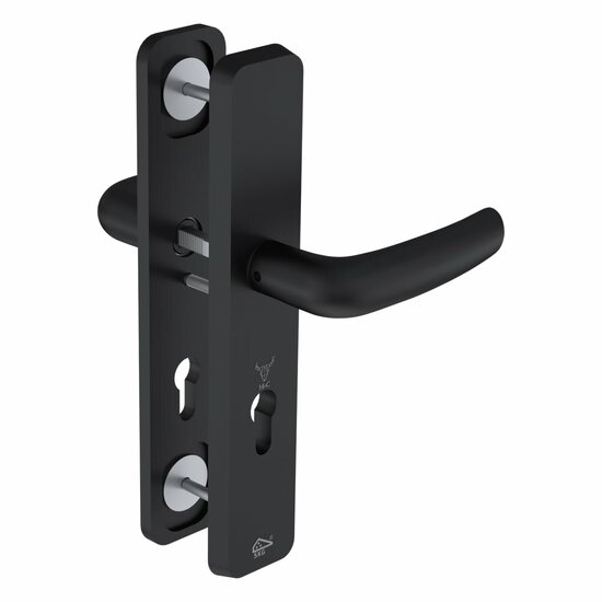 De buitenplaat is extra stevig uitgevoerd: het buitenschild wordt met 9 schroeven vastgezet in plaats van de traditionele 3. Dat maakt het beslag aanzienlijk sterker en moeilijker te forceren.